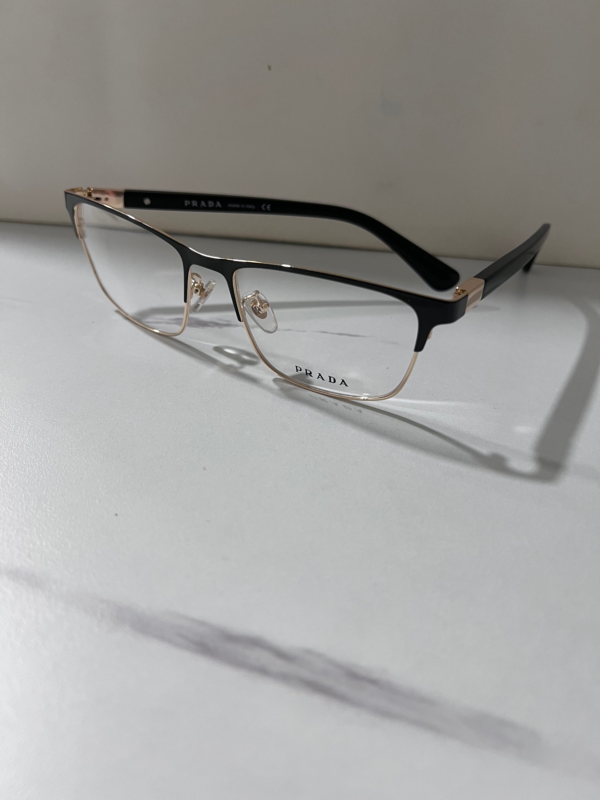 PRADA RECTANGLE BLACK & GOLD TITANIUM GLASSES FRAME