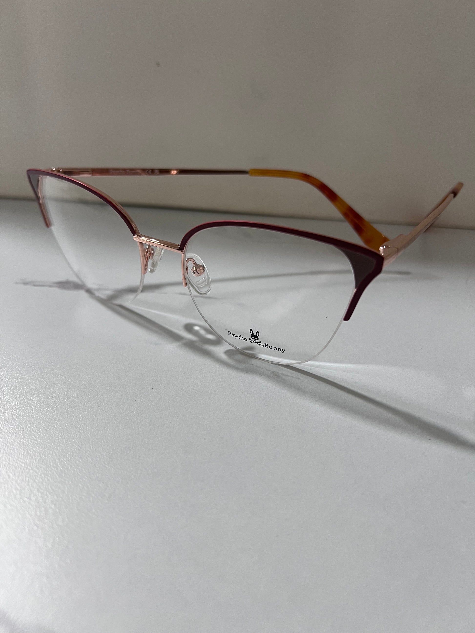 PSYCHO BUNNY RED & GOLD TITANIUM CAT EYE GLASSES FRAME