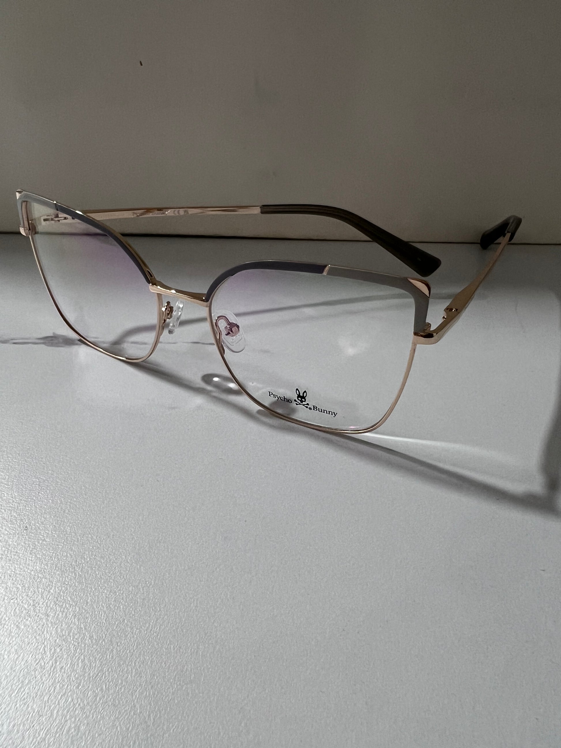 PSYCHO BUNNY GREY & BLACK SILVER TITANIUM CAT EYE GLASSES FRAME