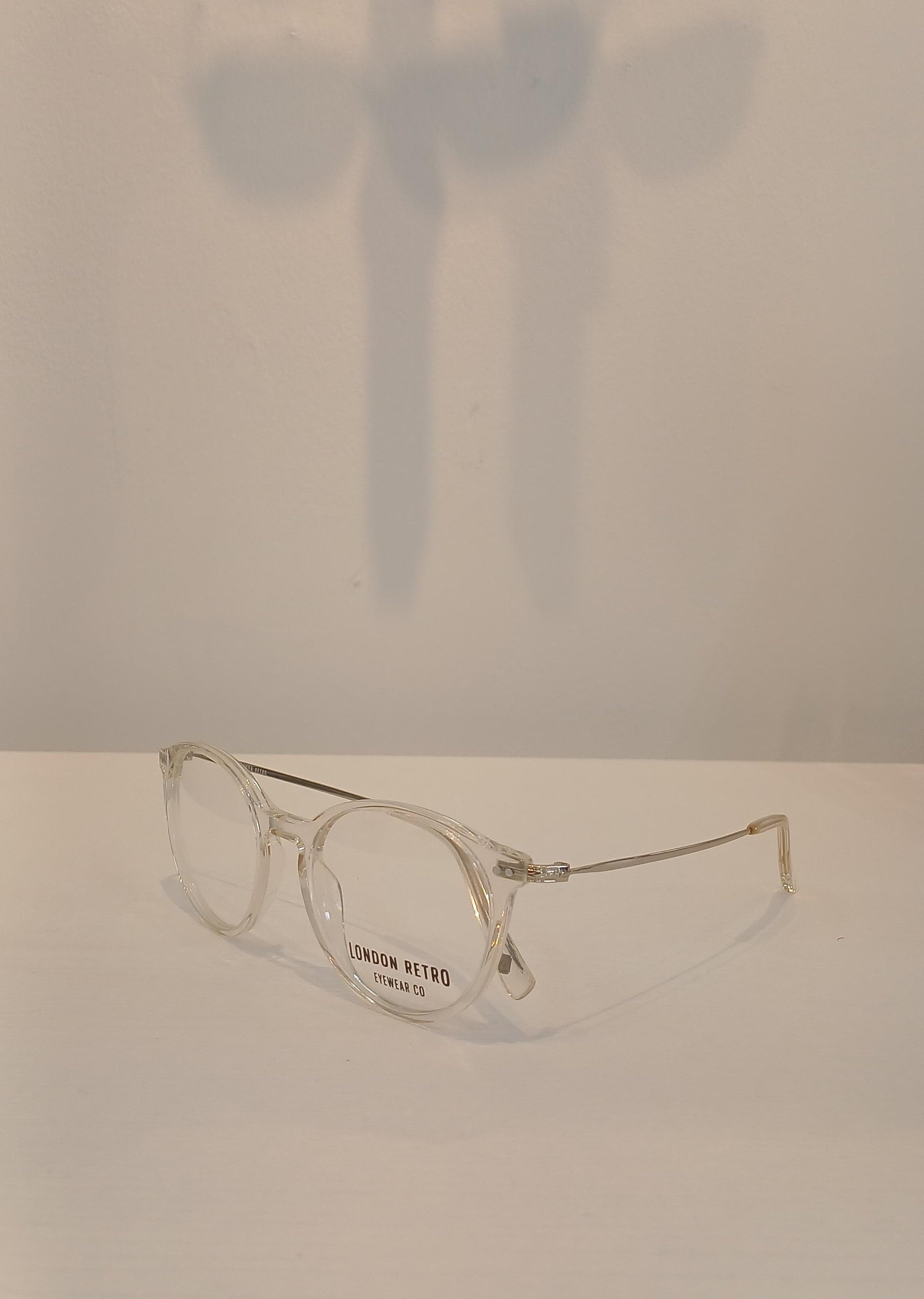 LONDON RETRO CLEAR GLASSES FRAMES W/ TITANIUM SILVER TEMPLES