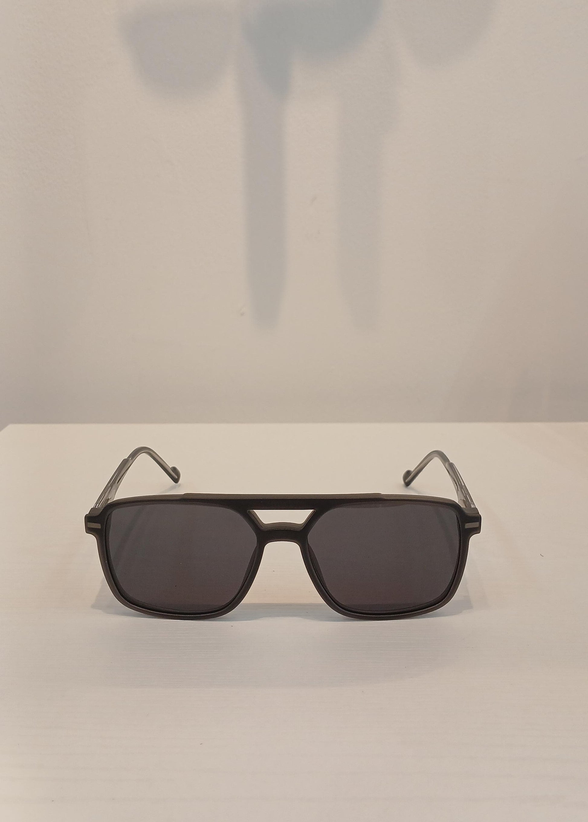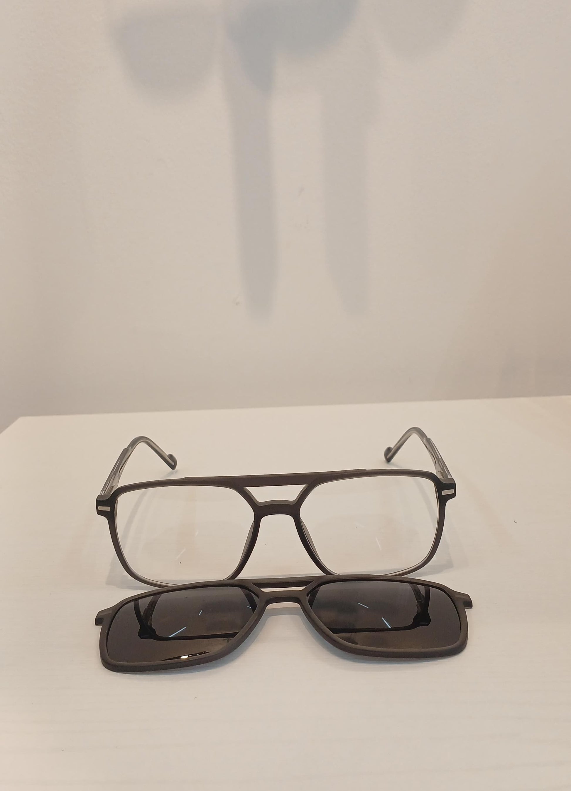 OPTI CLIP ON MATTE GREY VINTAGE GLASSES FRAME W/ BLACK SOLID POLARIZED TINT CLIP ON SUNGLASSES