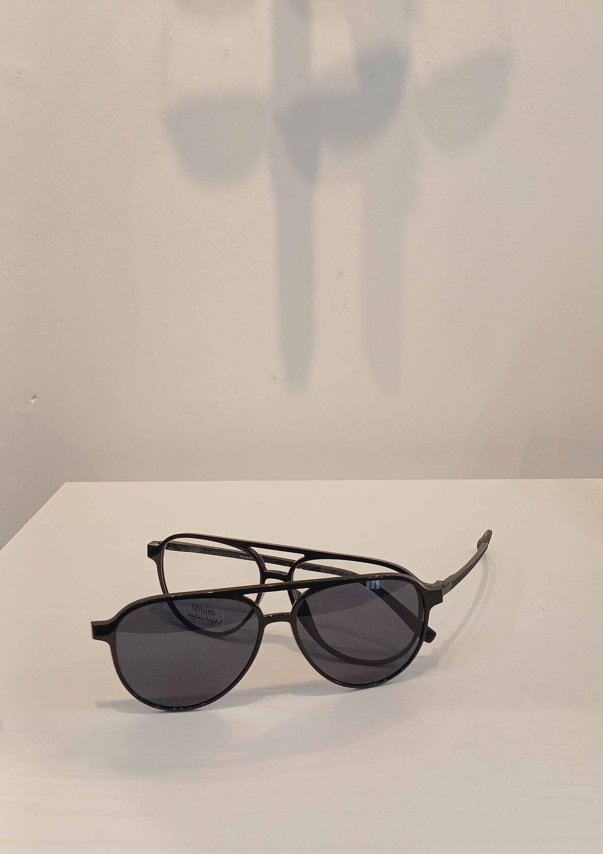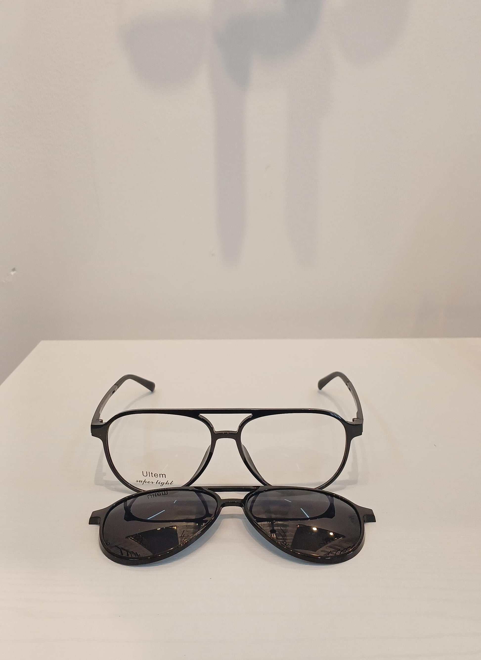 OPTI CLIP ON ULTEM BLACK ROUND VINTAGE W/ BLACK SOLID POLARIZED TINT CLIP ON