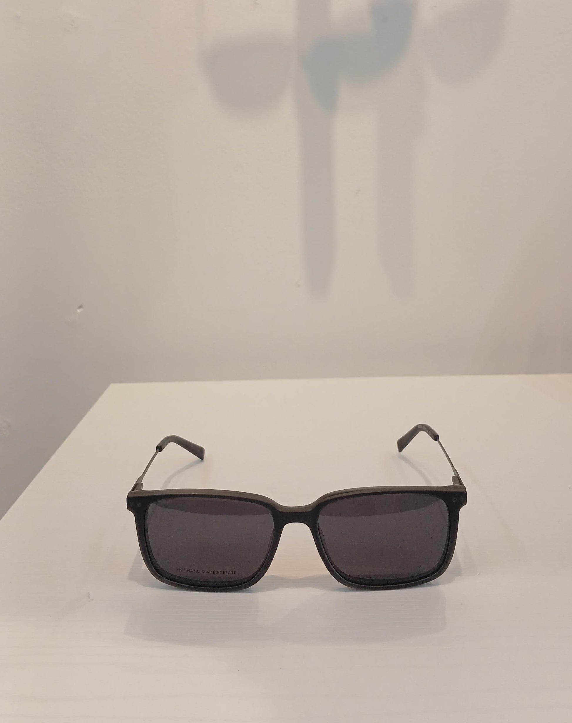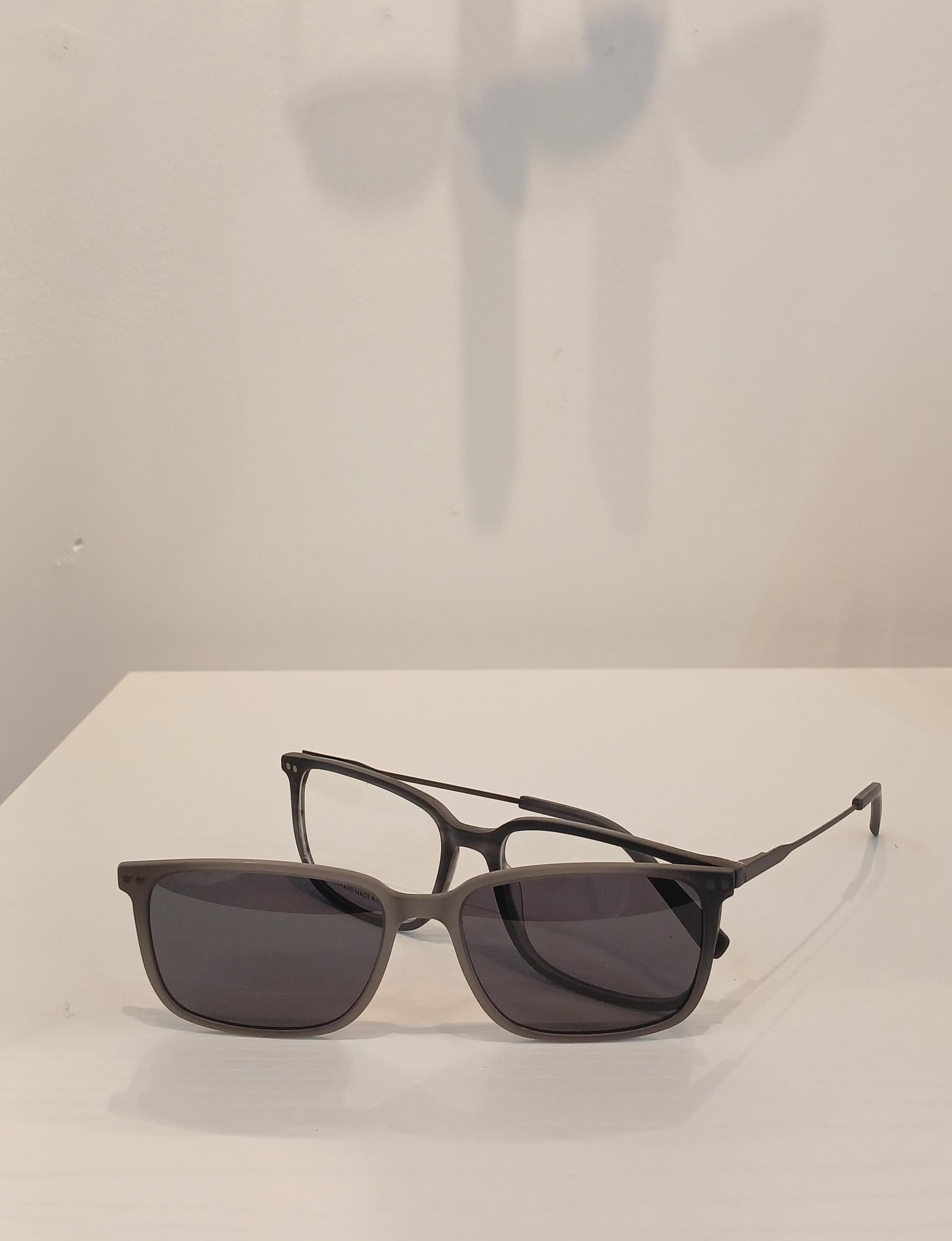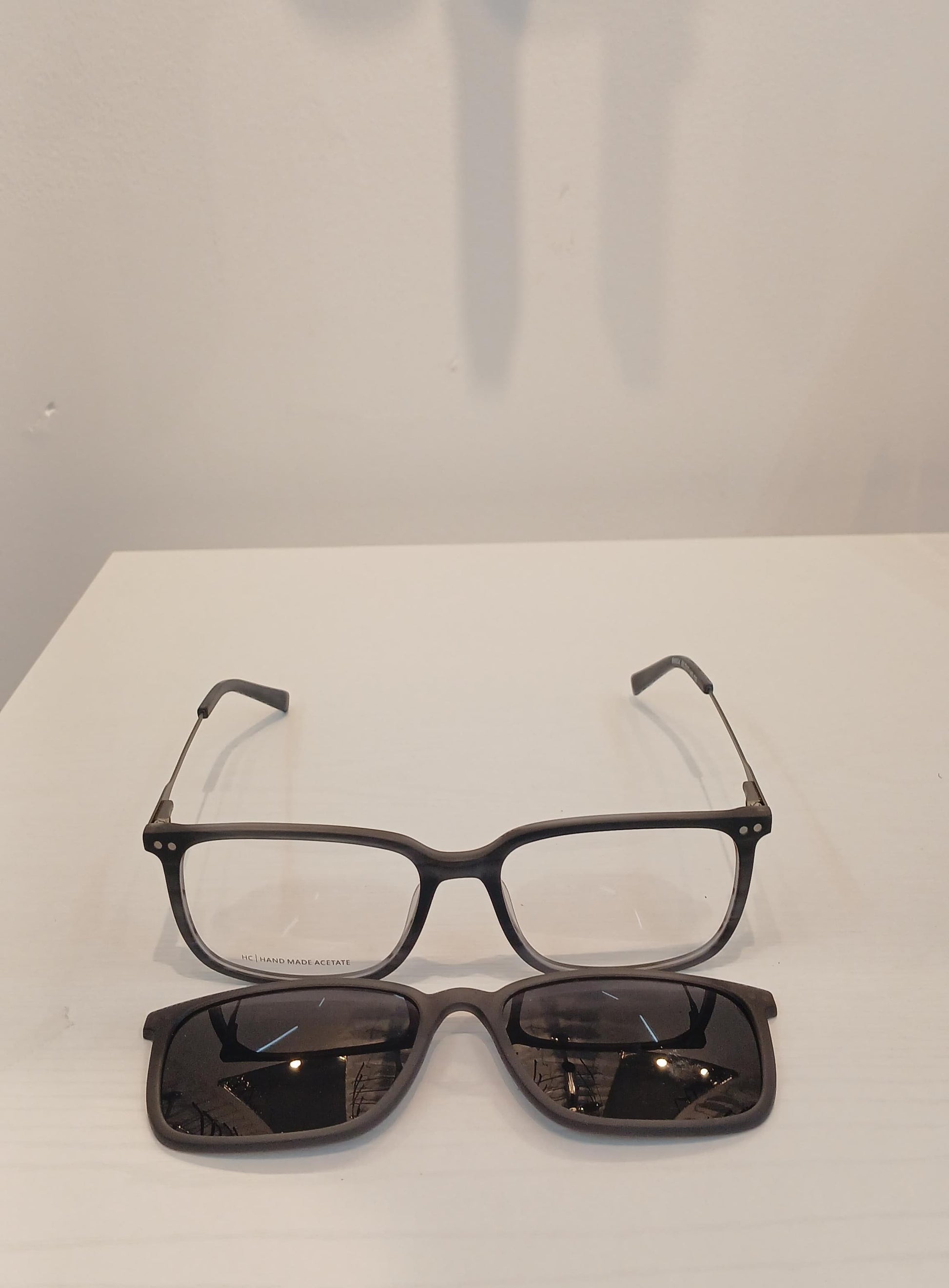 OPTI CLIP ONS MATTE BLACK/GREY GLASSES FRAMES W/ MATTE GREY BLACK POLARIZED TINT CLIP ON SUNGLASSES