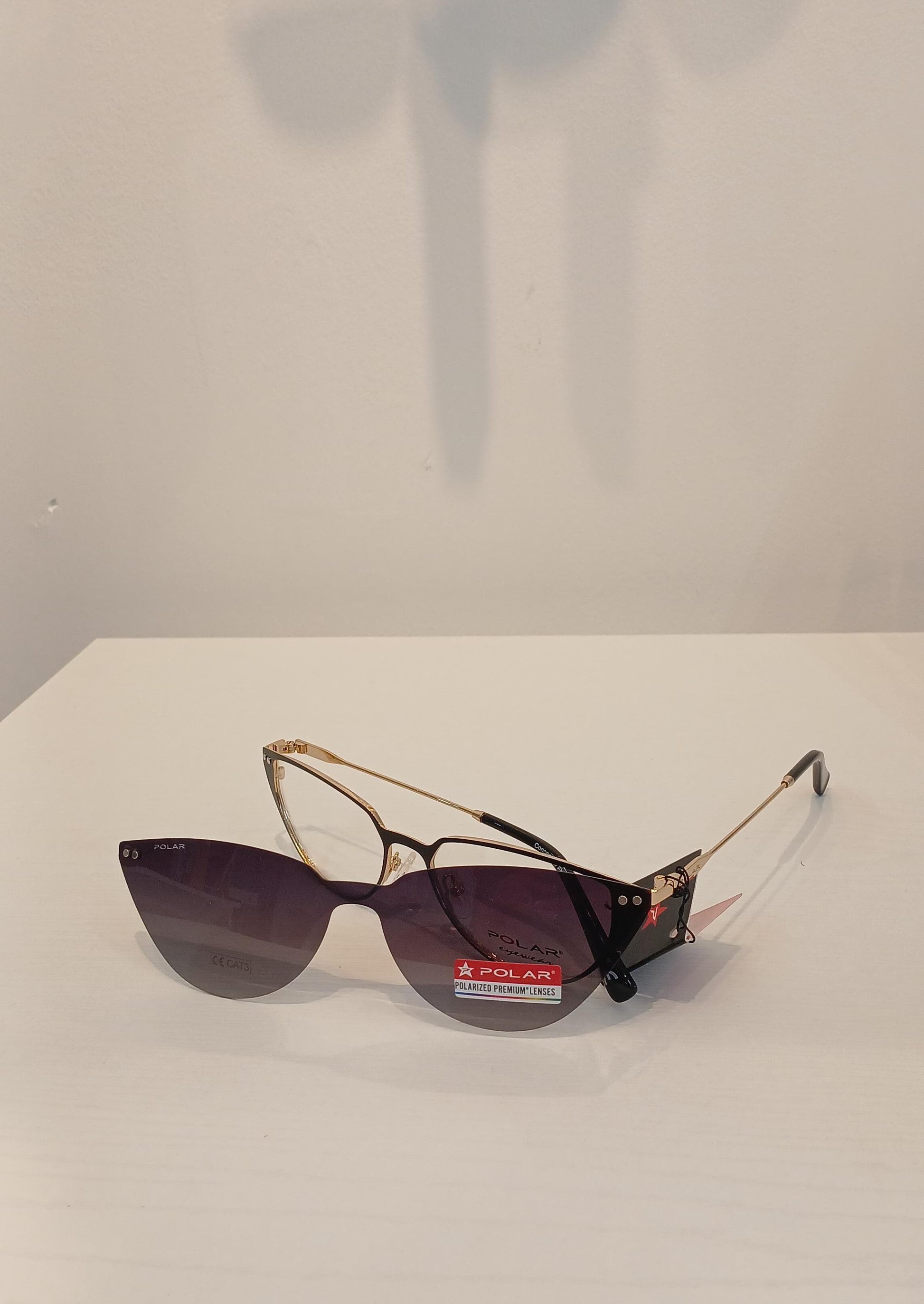 POLAR MATTE BLACK RETRO CAT EYE GLASSES FRAME W/ BLACK GRADIENT TINT POLARIZED CLIP ON